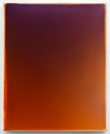 Dans son travail récent, il va jusqu’à abolir toute implication gestuelle de l’artiste. Il verse une résine colorée directement sur les tableaux posés à plat en équilibre sur des cales, sans intervenir dans son étalement. La gravité effectue progressivement son œuvre tandis que l’artiste, comme dans la pratique photographique, attend patiemment l’instant T, quand le liant acrylique opaque est définitivement fixé, celui de la révélation. L’œuvre est dès lors presque donnée tout entière dans l’instant même de sa conception.